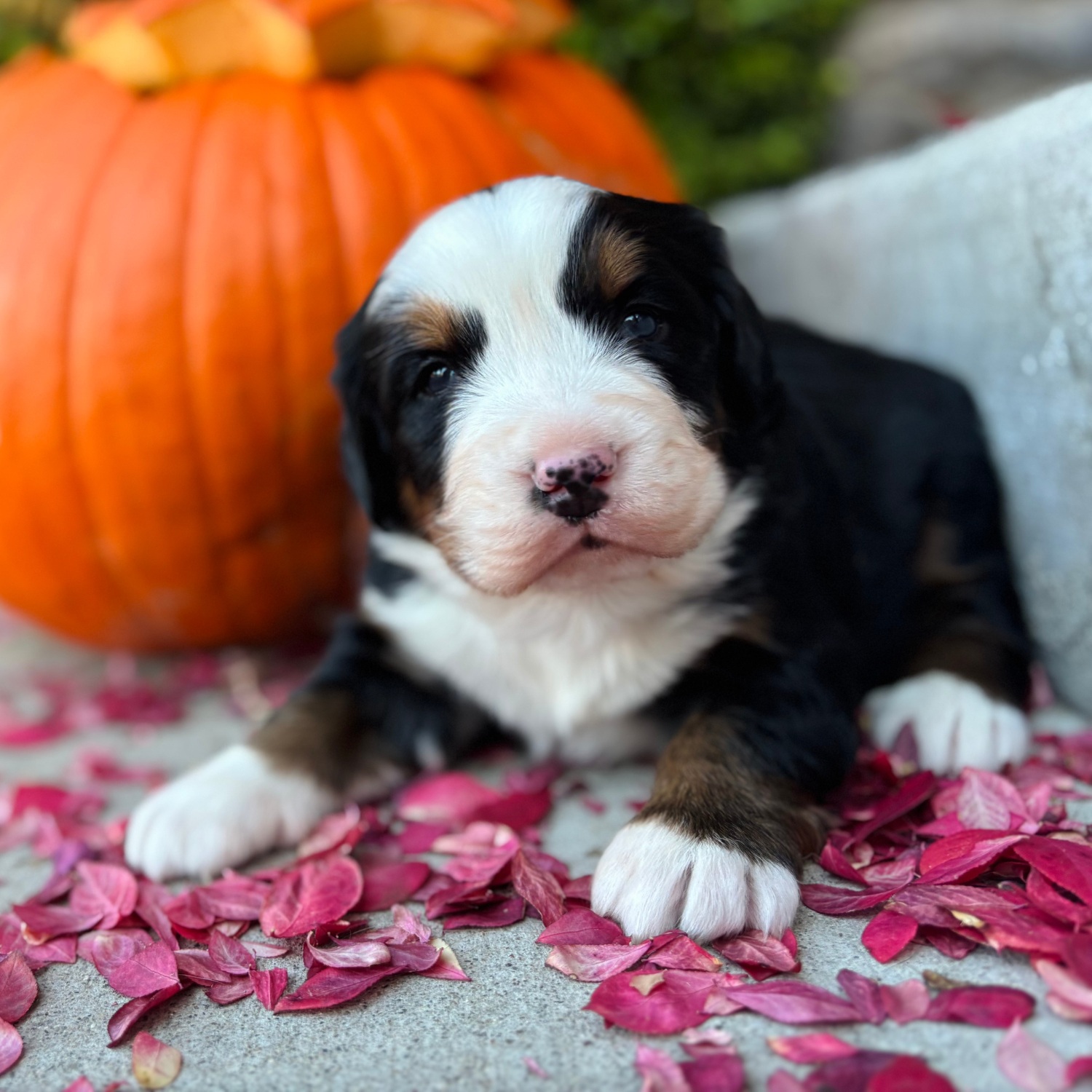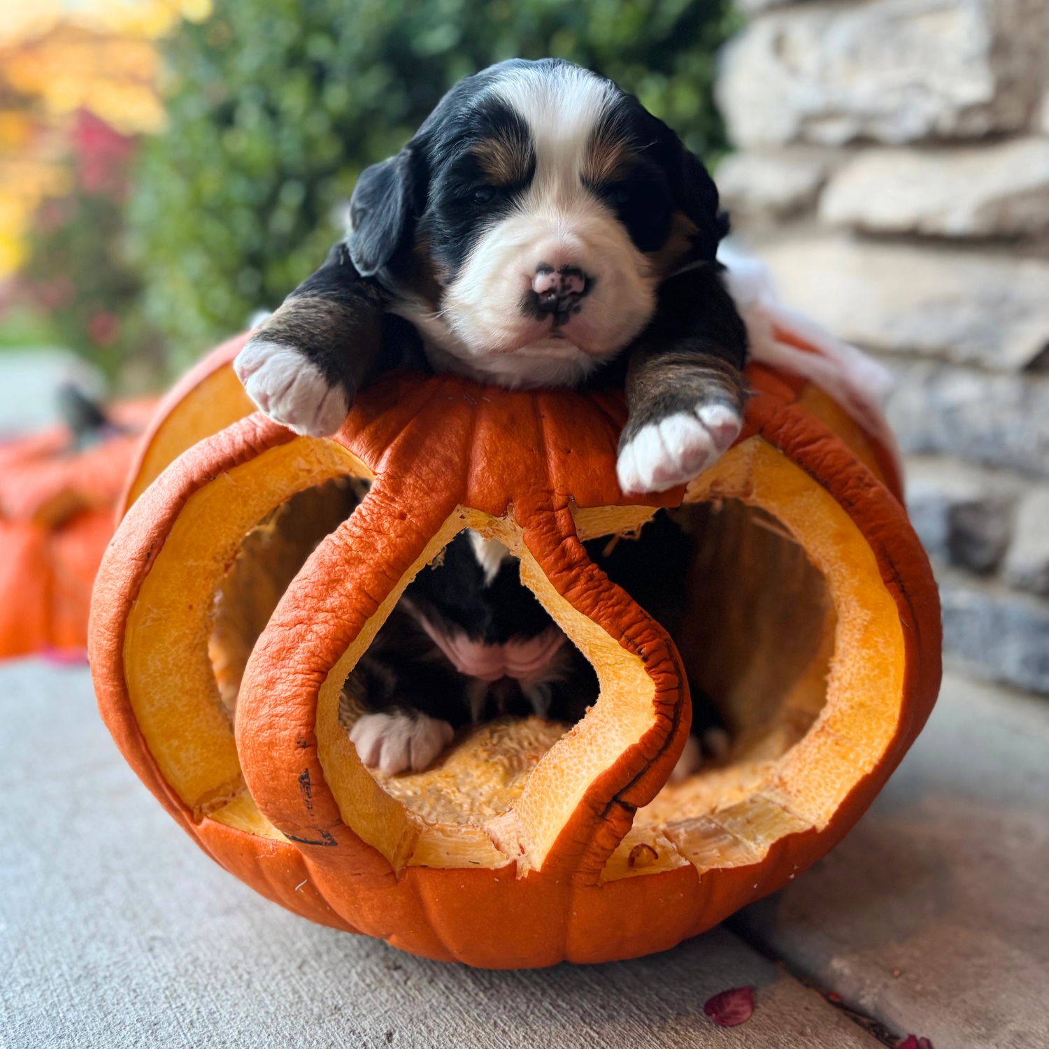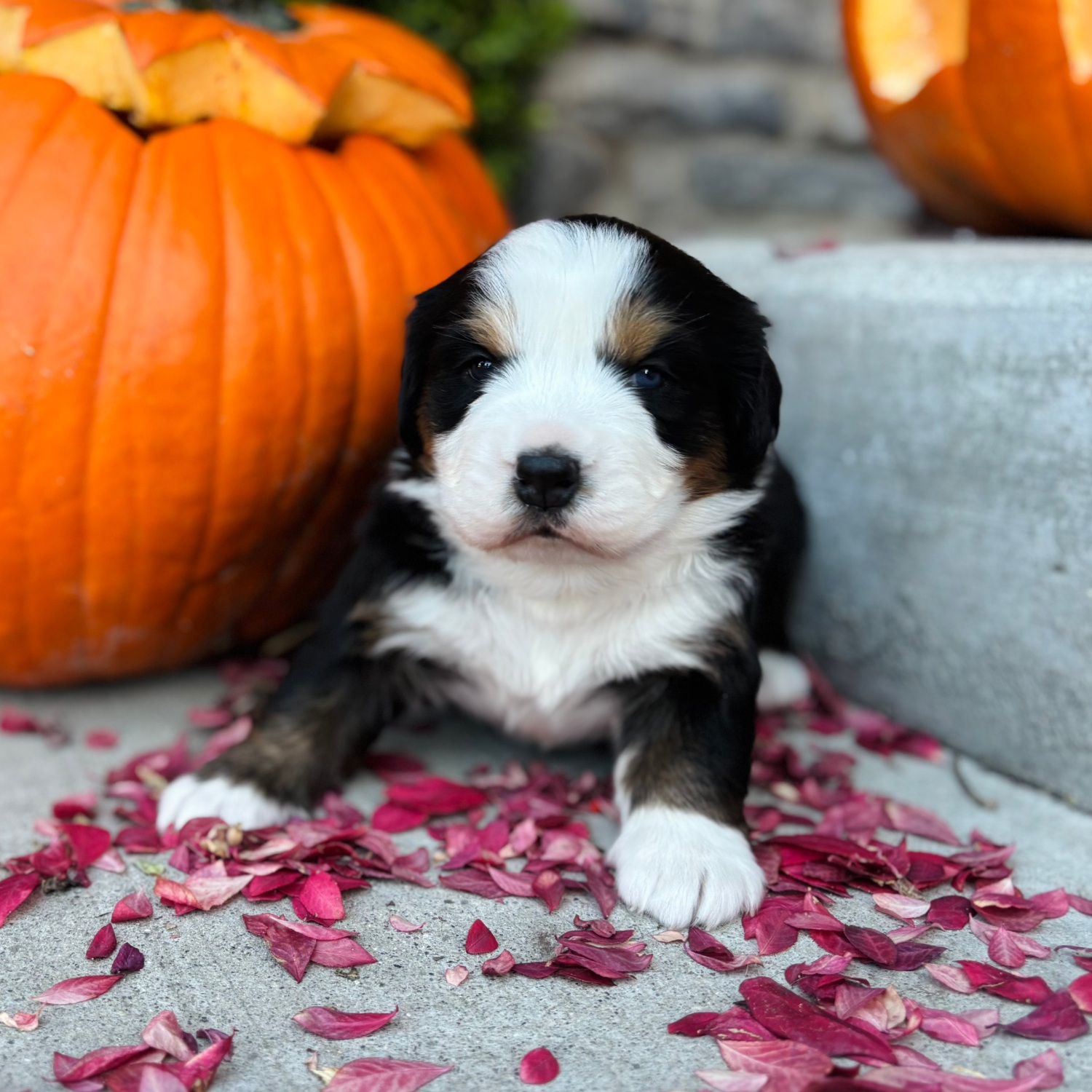 He was undeterred by her cool glances and faced repeated rejection with his tail held high. Denali eventually fell for the charming farm boy, as most girls do. Their love story resulted in four perfect Bernese Mountain Dog puppies, each a little piece of Denali’s grace and Daryl’s devotion, ready to carry their parents’ legacy of love, loyalty, and joy into new homes and hearts.