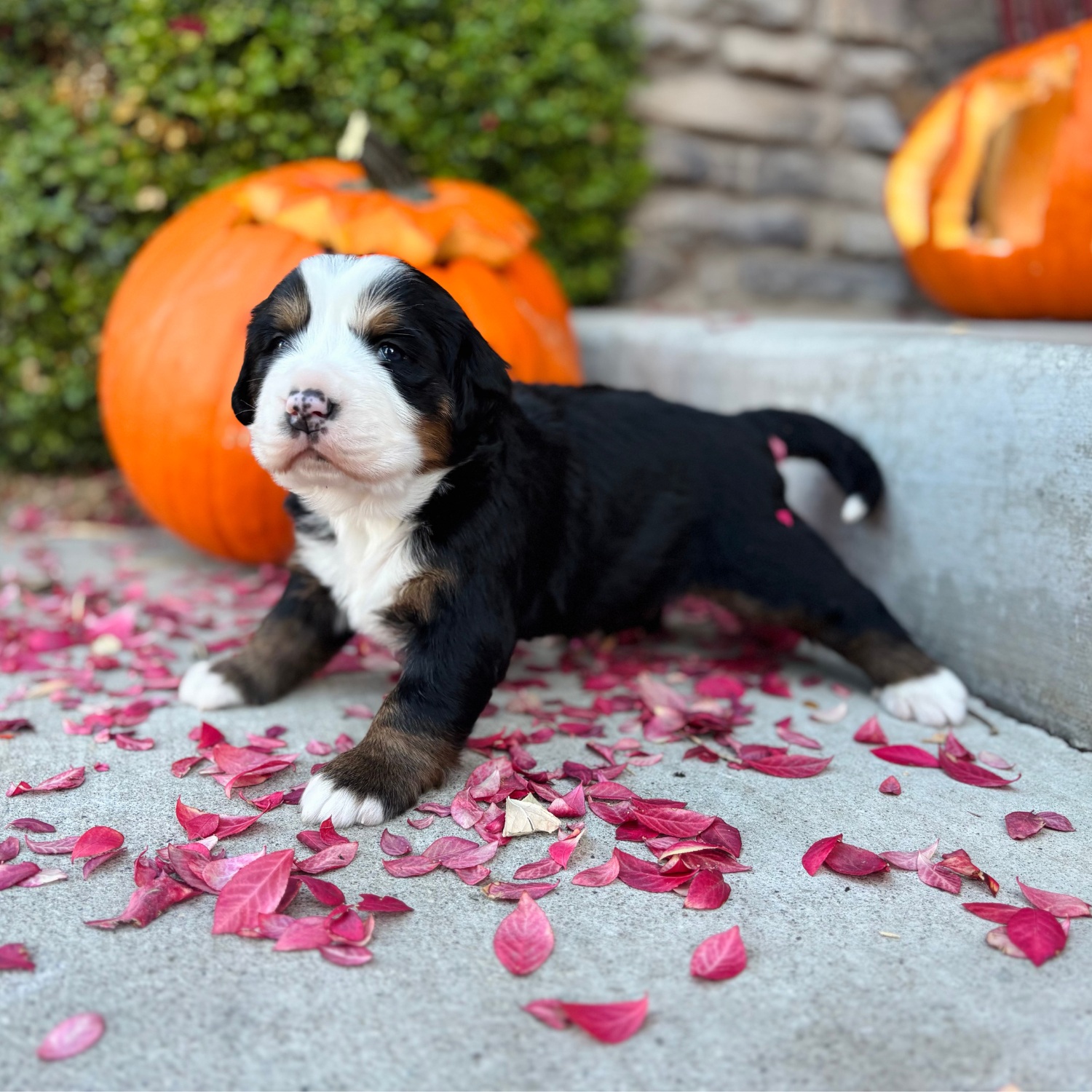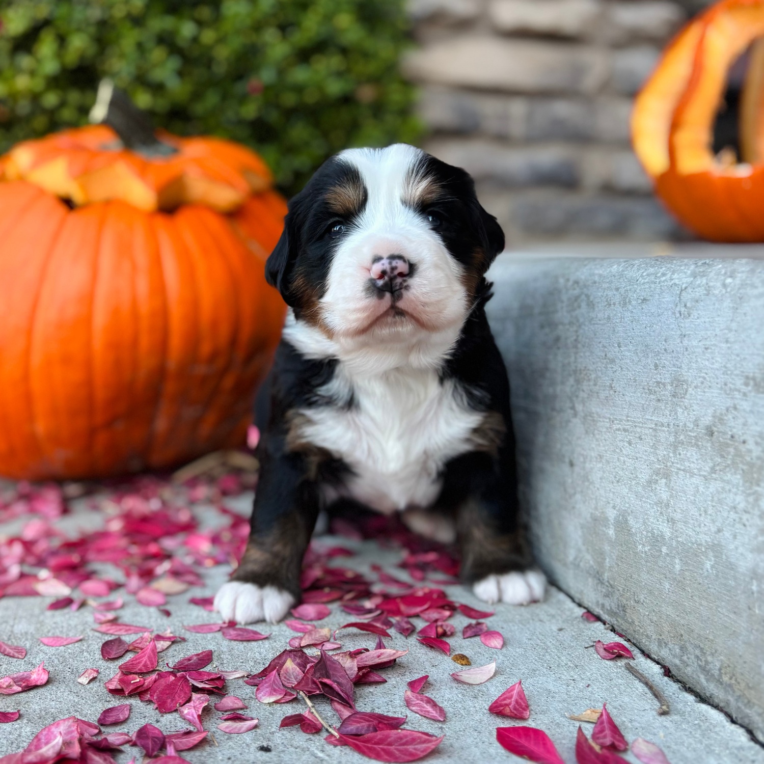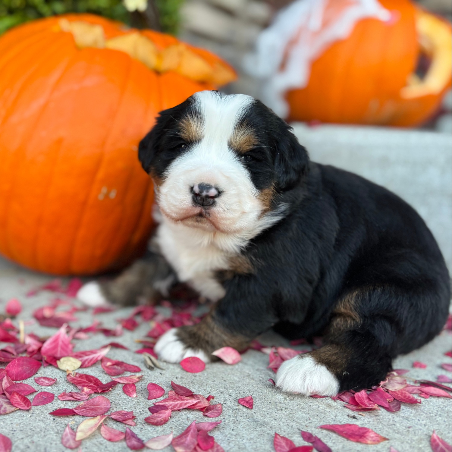 He was undeterred by her cool glances and faced repeated rejection with his tail held high. Denali eventually fell for the charming farm boy, as most girls do. Their love story resulted in four perfect Bernese Mountain Dog puppies, each a little piece of Denali’s grace and Daryl’s devotion, ready to carry their parents’ legacy of love, loyalty, and joy into new homes and hearts.